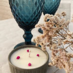 Todos los materiales para crear la vela (recipiente, cera de soja, aromas, dec